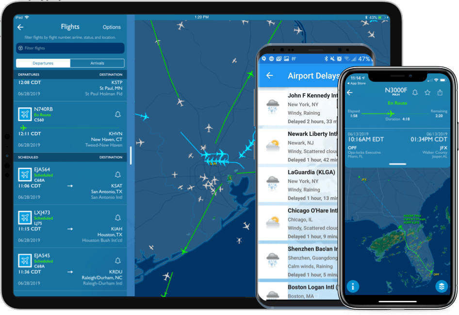 - Data mendalam — Detail pesawat (tail number, engine, registration), fleet view, airport stats.